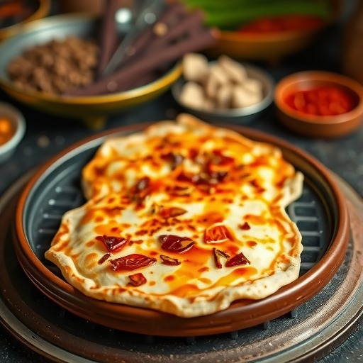 我们随便走入一家店,门面不大,一进门就闻到一股炙烤的面香。店门口支着一个烤炉,旁边的案板前站着一位短发大姐,手腕翻飞,正在制作火勺。几分钟的工夫,她便将面团揉成手腕粗细的长条,揪下一小团,在椒盐盆里轻蘸,再包入更大的面皮中,擀成一张张圆形小饼。