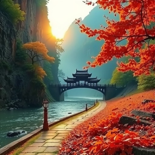 沿着河岸往前走,路边到处盛开着野雏菊、铁线莲,还有成片的大丽花和格桑花,它们在风中摇摆。花丛里,不时会落下或飞起几只喜鹊、鸽子。远山苍茫,河水翠绿,两岸的植物正在秋天变幻着色彩,而峡谷里一条小路时隐时现,延伸着,一直到达山下的河面,那里泊着一条小船。